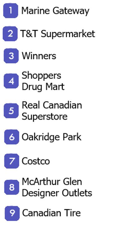 South Vancouver’s urban heart beats here. Marine Gateway is home to grocery stores and other everyday essentials, along with restaurants, health services, and a movie theatre. Feeling called to nature? Walk or bike to parks, shorelines, and trails.